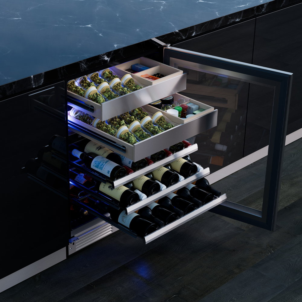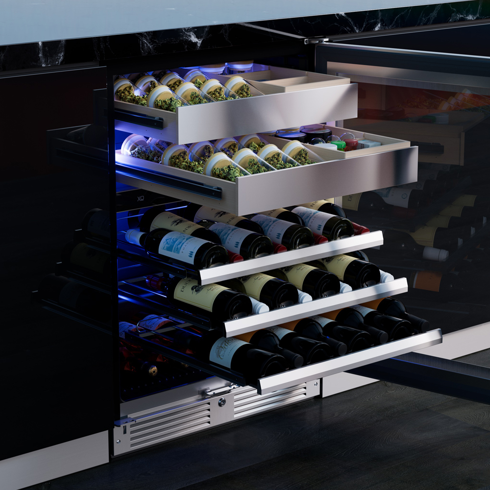 The XO Wine and Weed Preservation System is a remarkable innovation in the world of wine and cannabis storage. It ensures that your wines and canna-products are each stored at their optimal temperature and humidity levels.