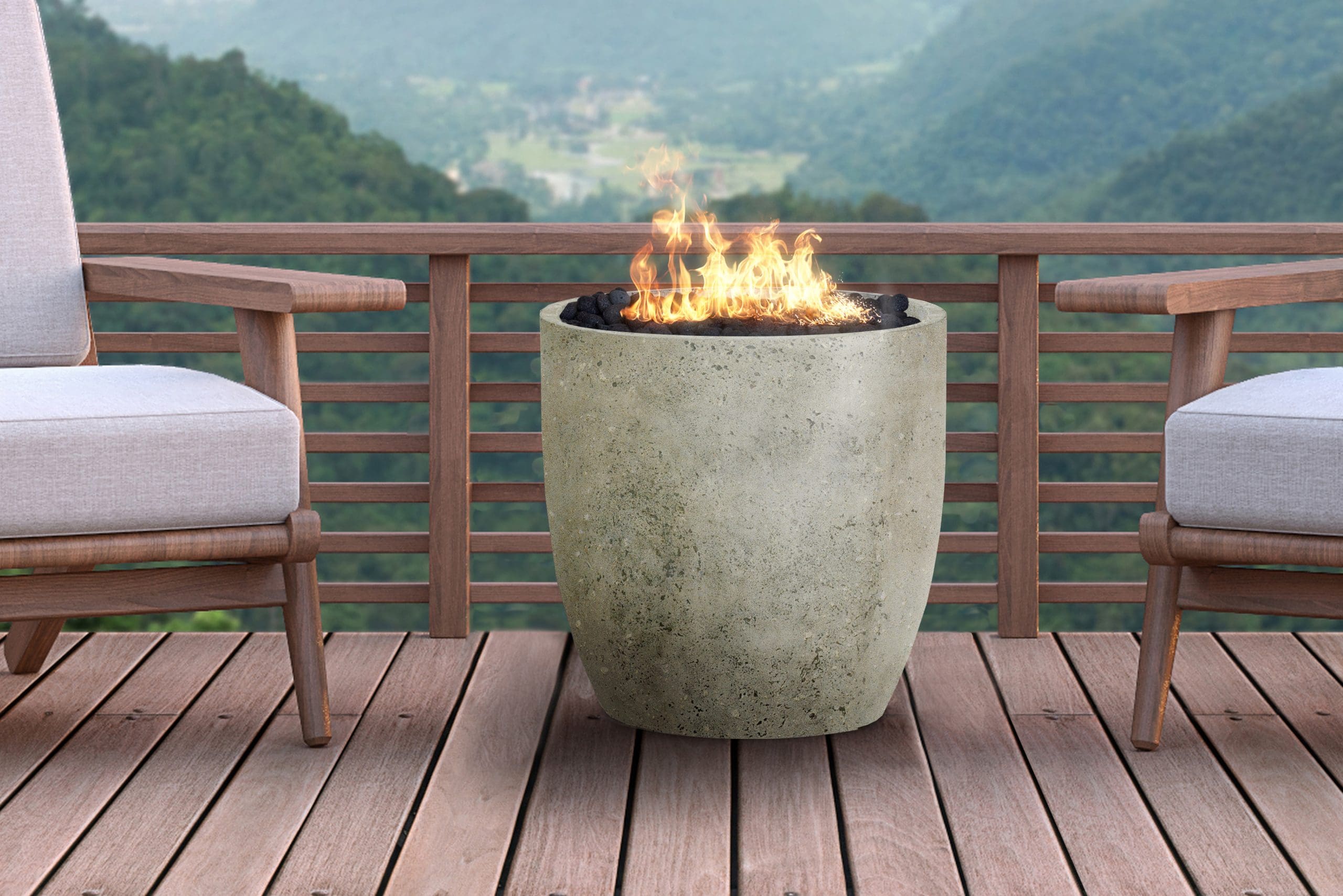 Our finishing process ensures each fire centerpiece is a unique creation. Available in 2 designer finishes - Dark Gray and Limestone. Now 40% lighter weight!