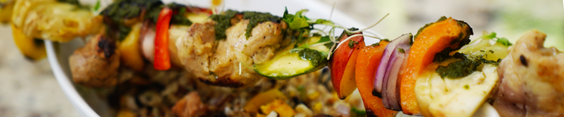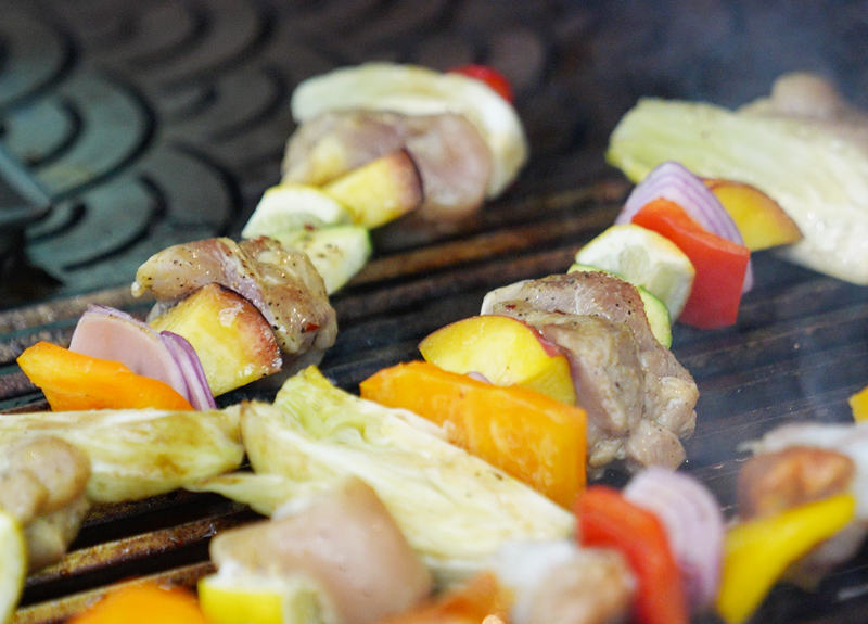- 3 peaches cut into squares (approx. 1-2 pieces per kabob)