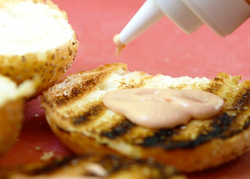 - Place a patty on each bun bottom, add toppings of your choice, and close with the bun top.