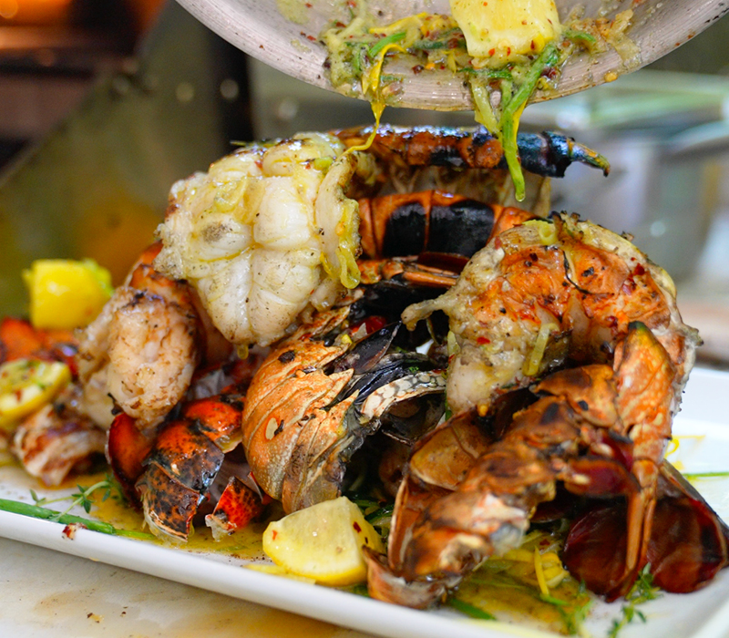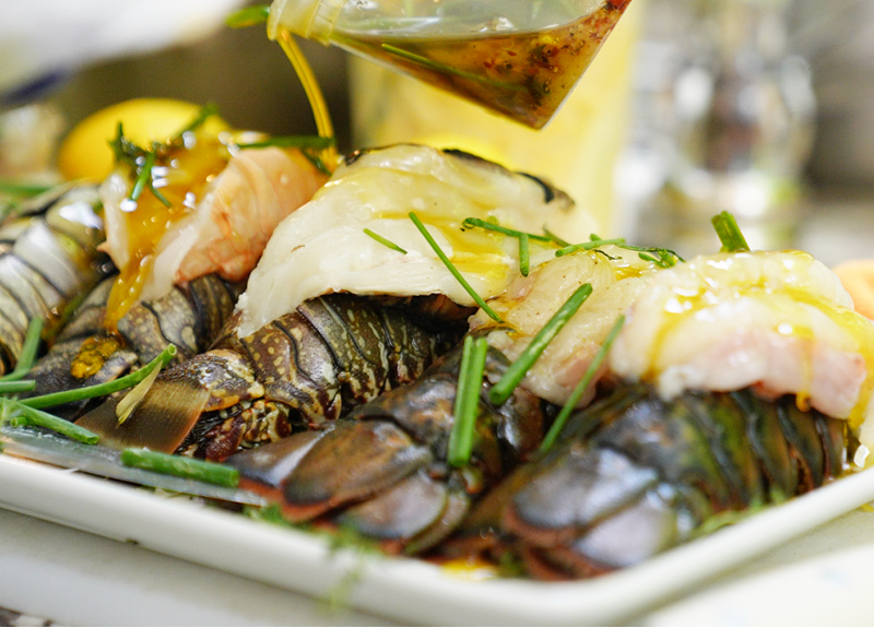 - Pour Pesto Garlic Butter Sauce** over the lobster after it is on the platter