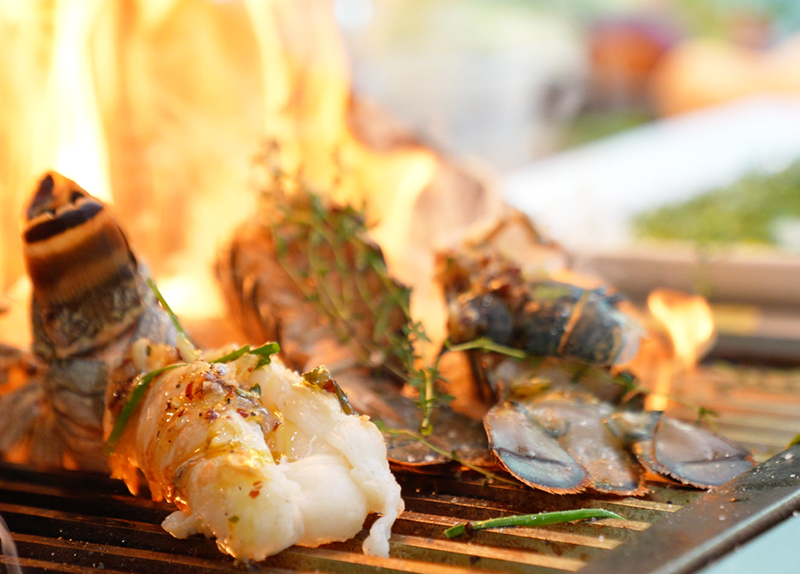 - Marinate lobster tails while the shells are intact. 2. Crack frozen tails in ½ lengths, loosen the meat. Place on grill with a med-high temperature. Get some brown char marks on them.