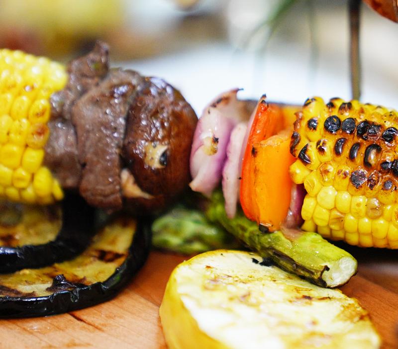 - Cook until beef is medium rare to medium and veggies & corn are charred.