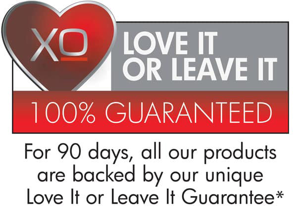 XO PRODUCTS ARE BACKED WITH OUR UNIQUE 90 DAY “LOVE IT OR LEAVE IT” GUARANTEE. THAT IS YOUR ASSURANCE YOU CAN NEVER GO WRONG CHOOSING XO.