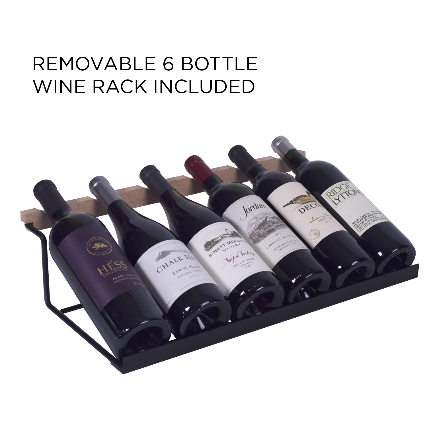 the 15" beverage centers include a 3 bottle display, while the 24" beverage centers include a 6 bottle display which are easily removed for additional storage or for use as a serving piece separately
