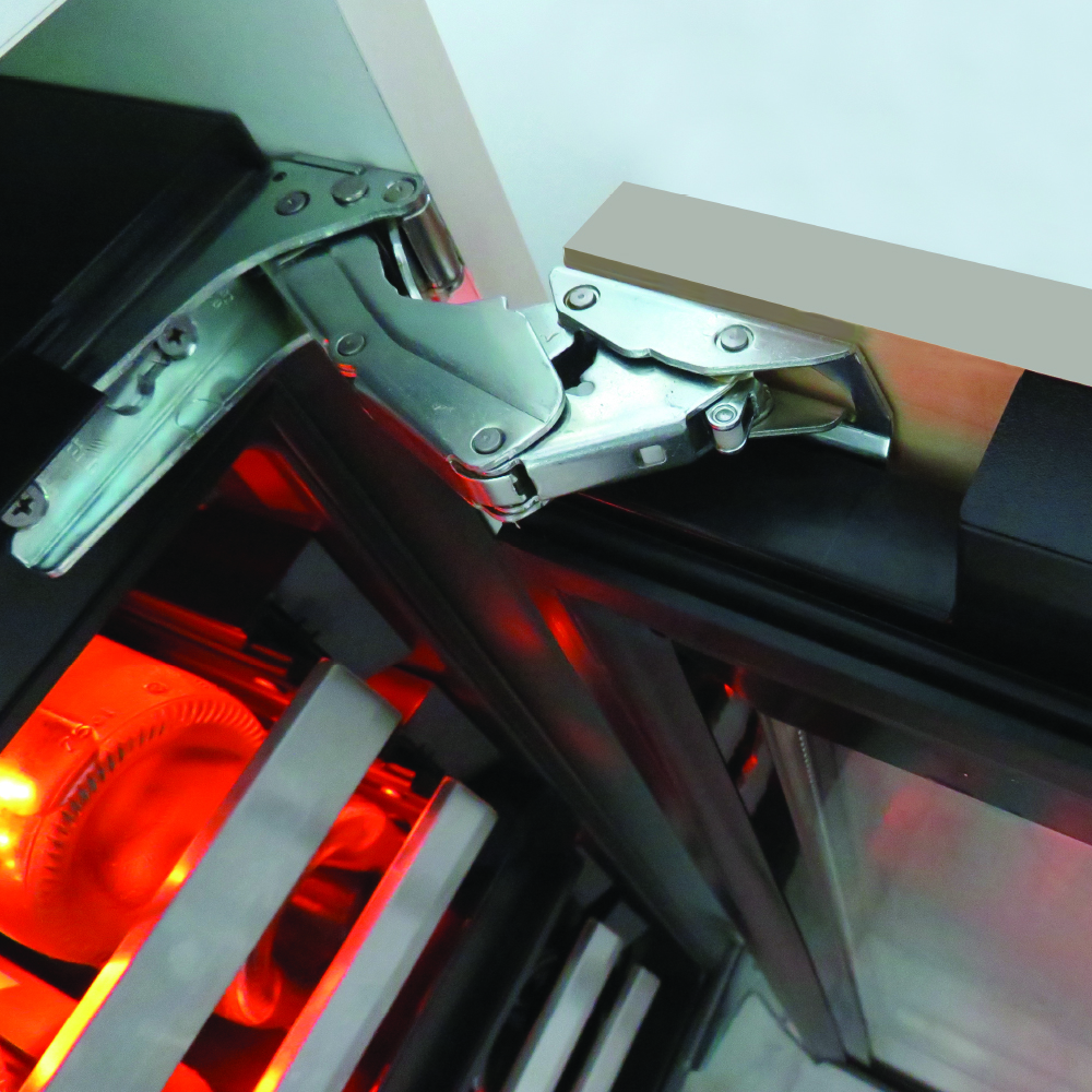 The articulated hinges ensure a seamless integration with your cabinets and allow use of panels longer than 30”.