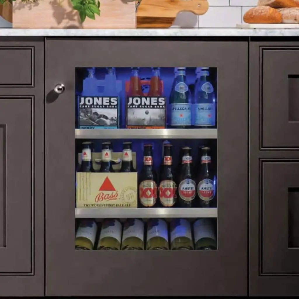 Finally, a Beverage Center that fits virtually any 24" wide location. Whether ADA height or US Standard – American or European style cabinetry, XO has just the right unit. Frame the door to expose the Low-E glass window (optional Stainless Steel Door Kit available) And, your XO Beverage Center comes with clear glass shelves that fully extend while fully loaded enabling you to see everything.