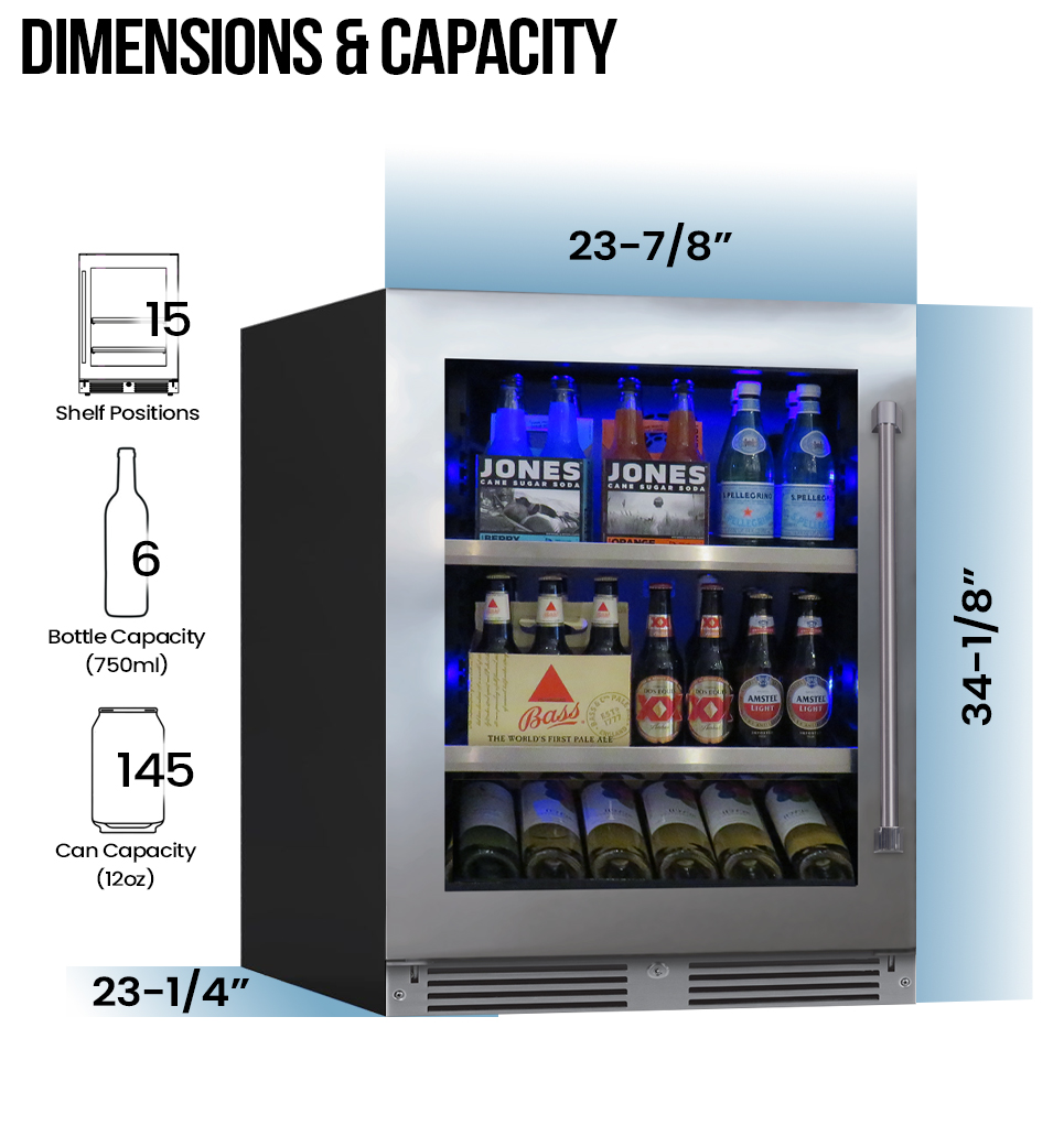 • Can Storage Capacity: 145 (12oz)