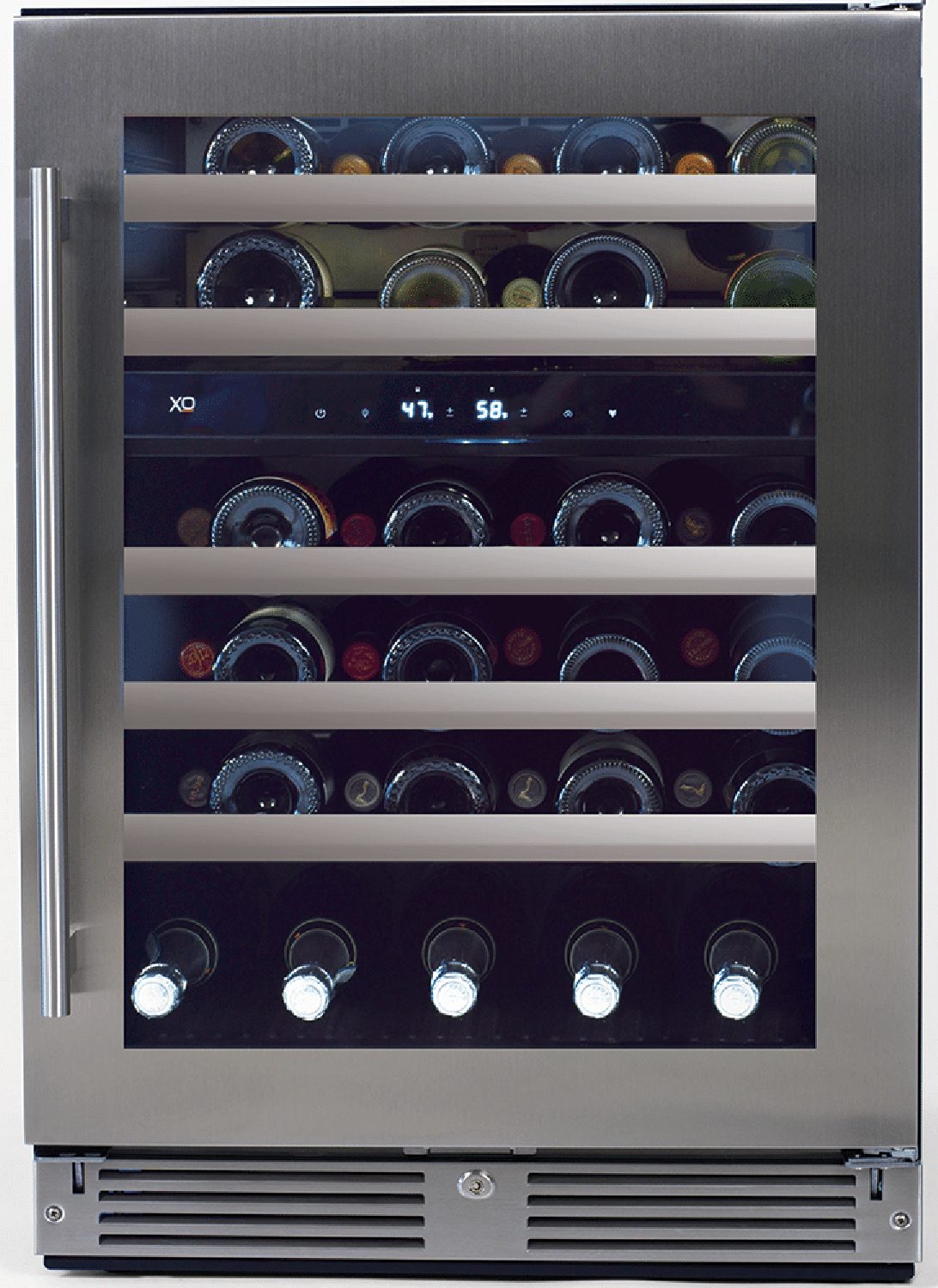 Red and white wines require different environments. XO’s Dual Zone wine cooler enables you to store and serve your favorite vintages from the same cabinet at just the right temperature. The upper racks will hold up to 16 bottles chilled between 41′ to 50′ F while the lower zone will hold up to another 30 bottles between 50′ and 64′ F.