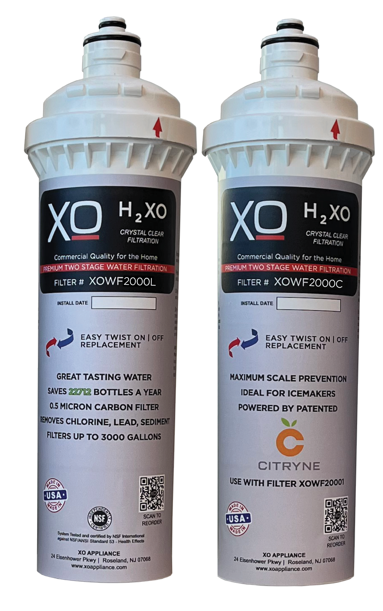 2 STAGE SYSTEM: For installations where hard water is an issue – Stage 1: Improves taste, odor and clarity removing chlorine, sediment, rust, and cysts to 0.5 micron Removes up to 99% lead. Stage 2: Heavier scale inhibition with patented Citryne (XOWF2000SYS uses FDA tested, patented Citryne for maximum scale inhibition that does not adversely affect ice quality)