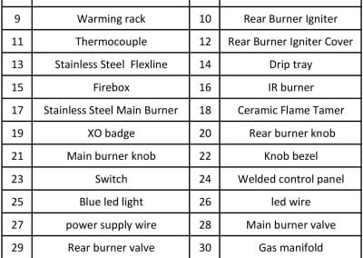 XOG 36″ Outdoor Kitchens Parts Catalog