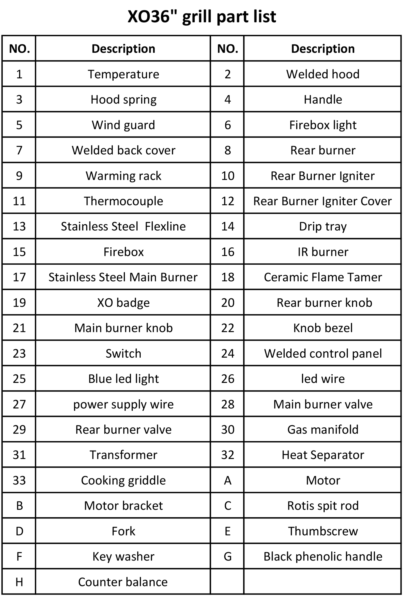 | XOPG037 | Hood Springs for 36″ Grill (XOGRILL36) | More Info | $14.99 | ||