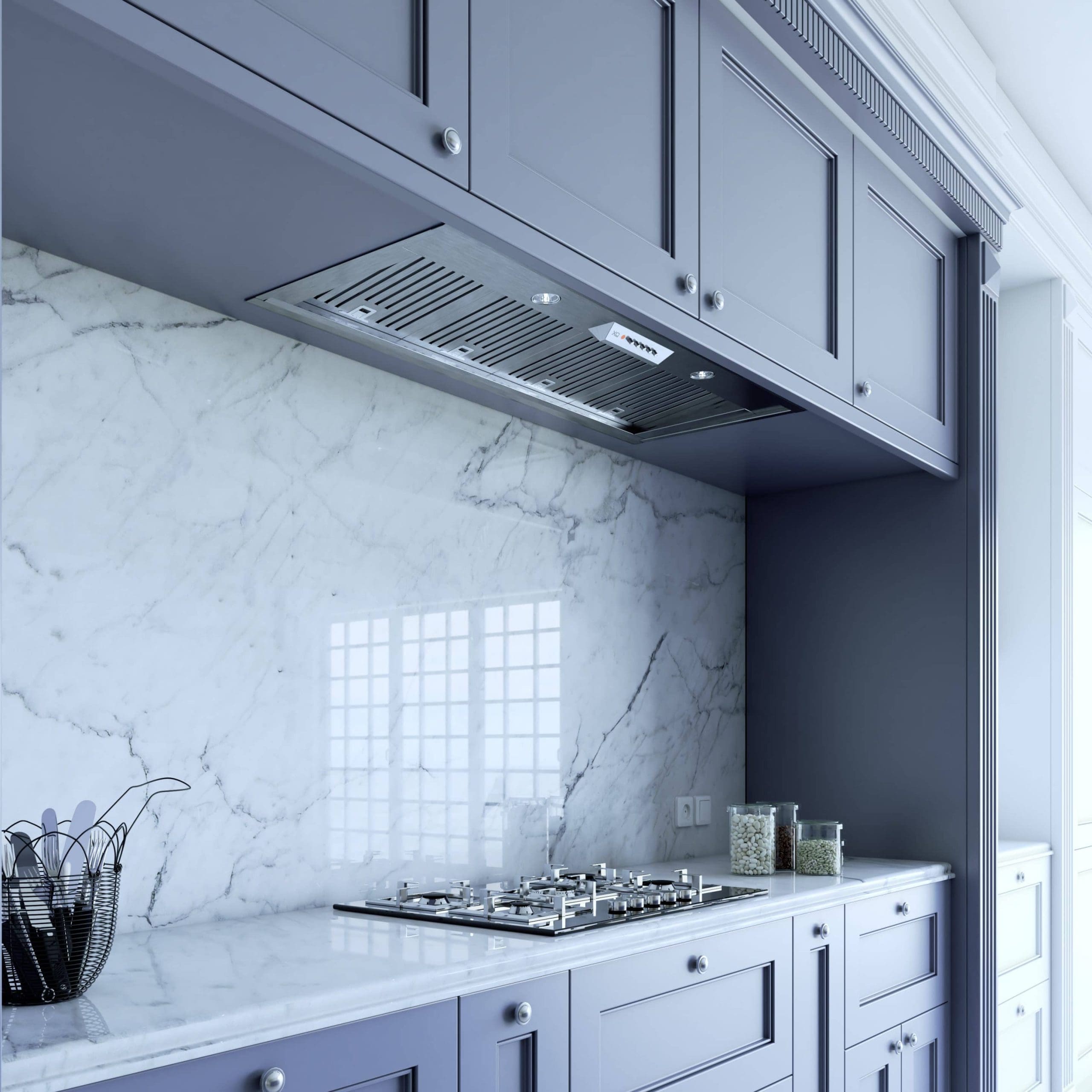 The XOI insert is an integrated blower that allows you to match your custom hood to your kitchen. This simple and affordable design is easy to install. Designed and crafted in Italy.
