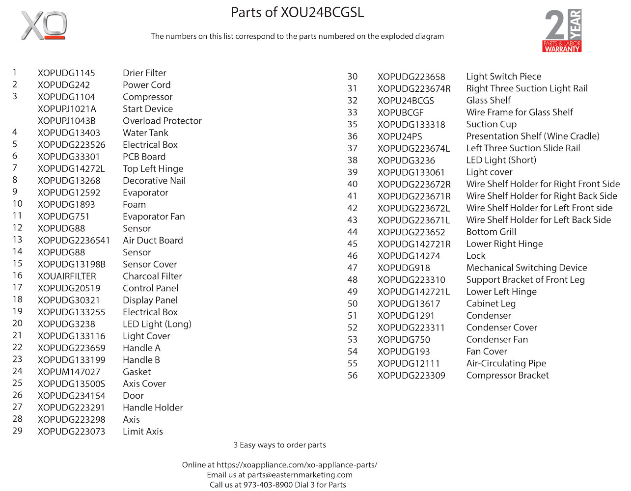 XOU24BCGS Undercounter Refrigeration Parts Catalog