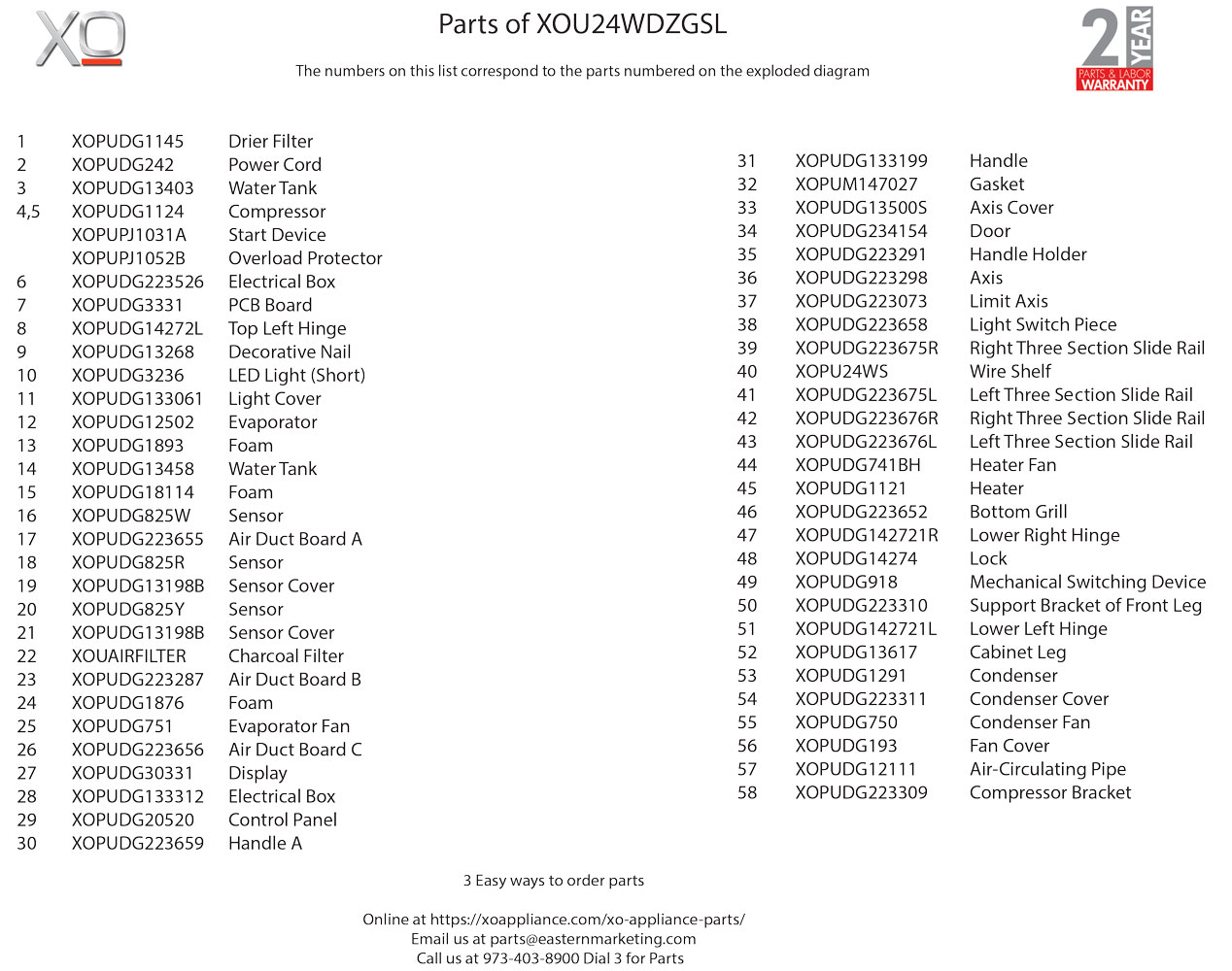 XOU24WDZGS Undercounter Refrigeration Parts Catalog