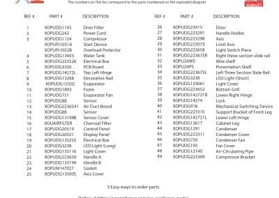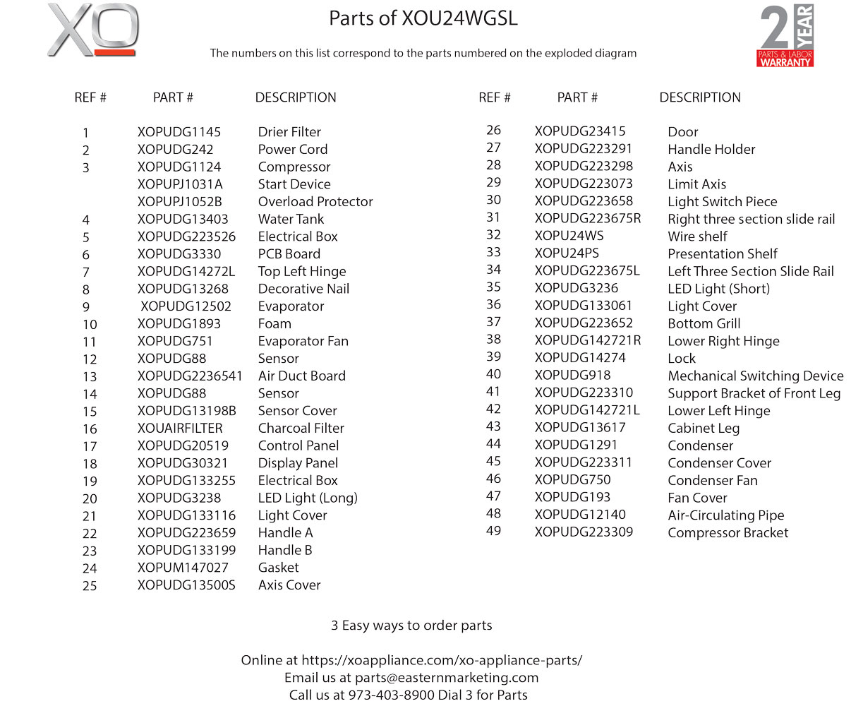 XOU24WGS Undercounter Refrigeration Parts Catalog